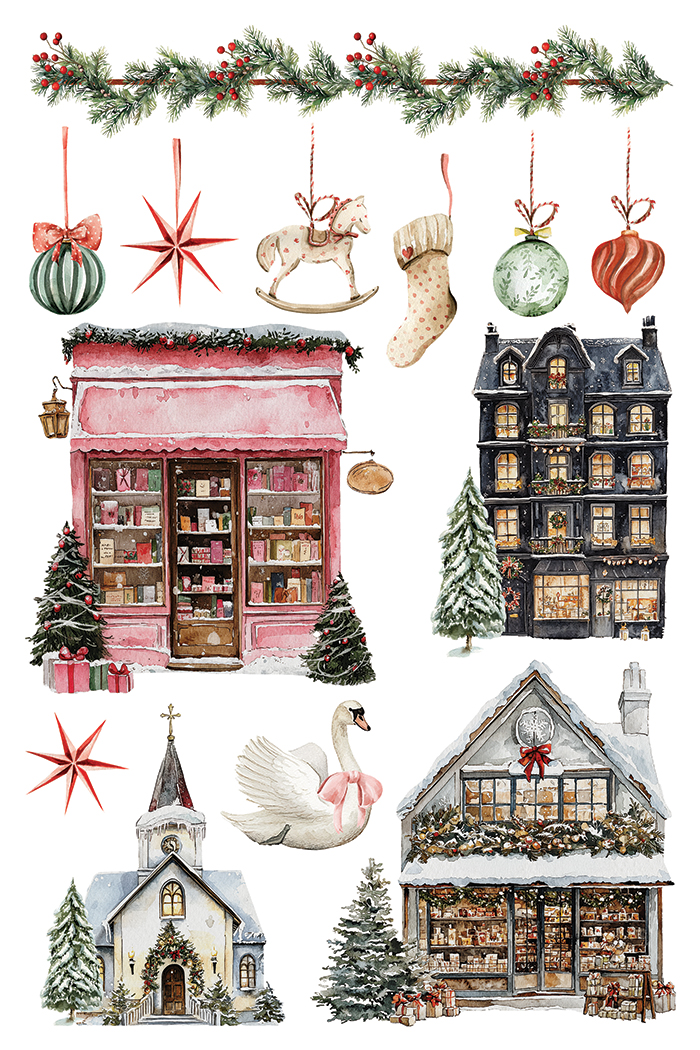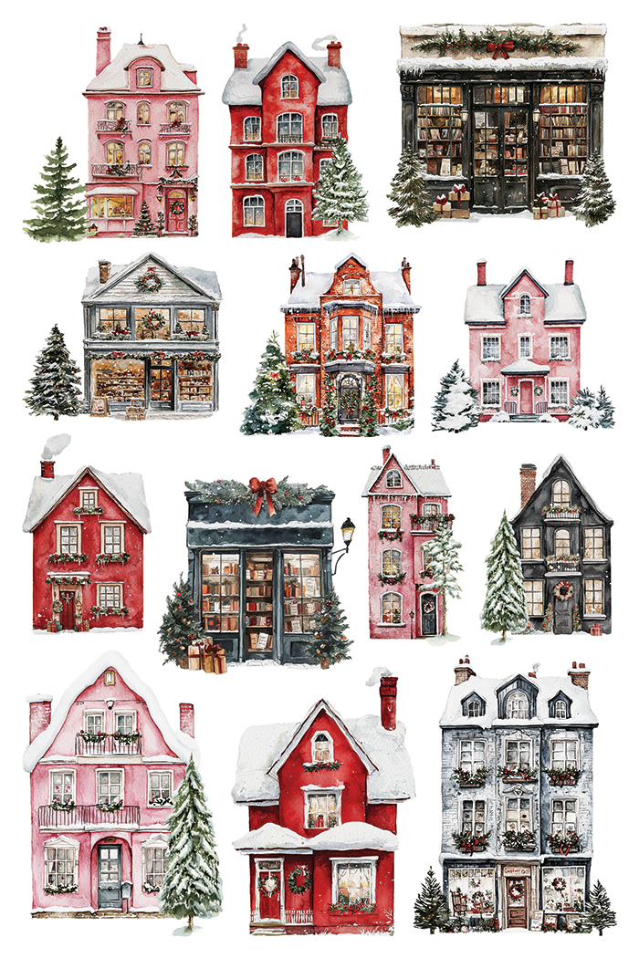 Step onto Partridge Lane, where fluttery bows, cheerful wreaths, and dainty Christmas cottages come together with painterly charm and a wink of whimsy. This delightful transfer is for the maker who likes a little quirk in their craft, storybook sweetness, and a whole lot of holiday cheer.